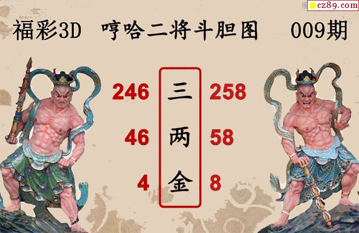 福彩3D2026009期 白鱼舟3D图谜哼哈二将斗胆图
